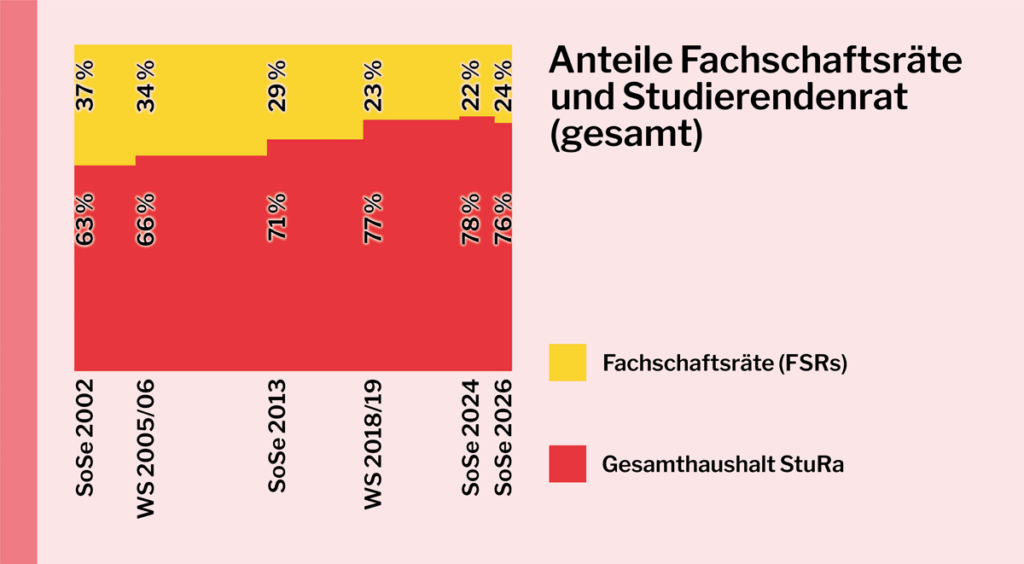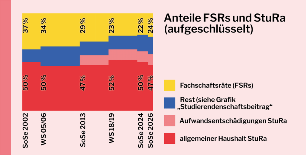 Zwar ist der Anteil der FSR-Gelder im Vergleich zum StuRa über die Jahre gesunken. …