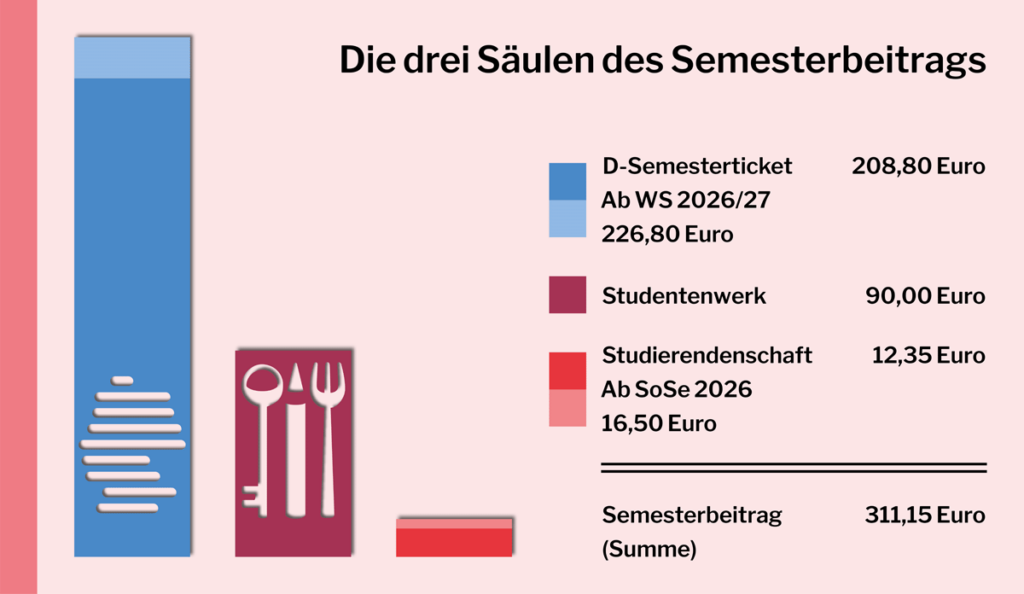 Gegenüber dem bisherigen Satz von 2,75 Euro bedeutet das eine Verbesserung um 42 Prozent. Aus dem geplanten Mitgliedsbeitrag von 16,50 Euro bekämen die FSRs dann einen Anteil von rund 24 statt bisher 22 Prozent. Die Mitgliedsbeitragserhöhung wird zum nächsten Sommersemester 2026 in Kraft treten.
