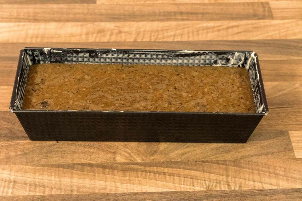 Masse in die Kuchenform einfüllen und im Ofen auf mittlerer Schiene circa 40 Minuten