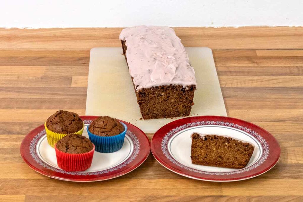 Die halbe Menge reicht für etwa 12 Muffins, die anderthalbfache Menge für ein großes Back-