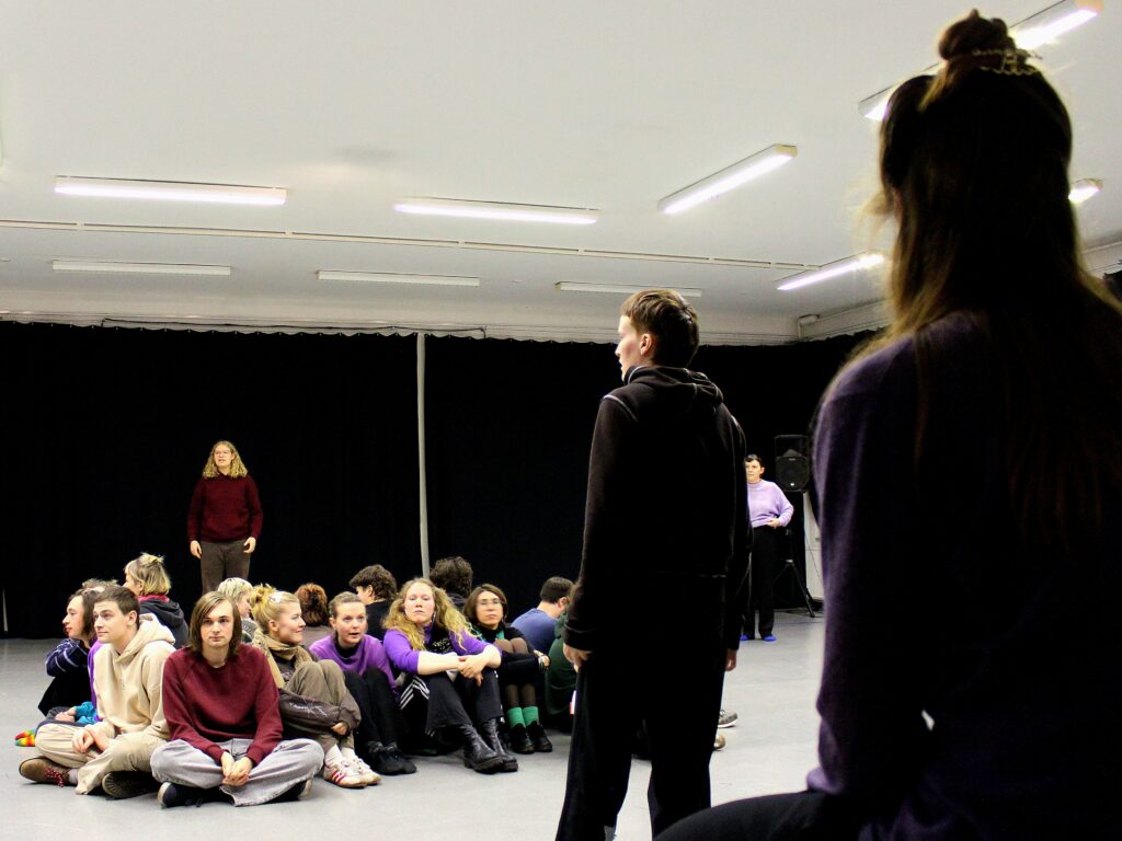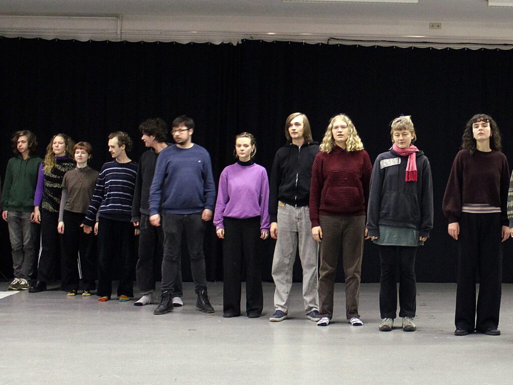 Zur Zeit meines Besuches ist das kommende Stück, welches am 28.01.2026 Premiere feiert, noch in Entwicklung. Unter den Themen Traditionen und Traditionen brechen, Stimmen und Echo begibt sich das Studierendentheater auf die Suche nach seiner Stimme. Auch in der Probe werden Resonanz, Lautstärke und Intensität ausgetestet: „Wir stellen uns die Frage, welche Stimmen noch gehört werden müssen. Welche sind leise und mit welchen Stimmen kann ein Echo erzeugt werden? Für welche Stimmen wollen wir ein Echo sein?“, erzählt Fanny.