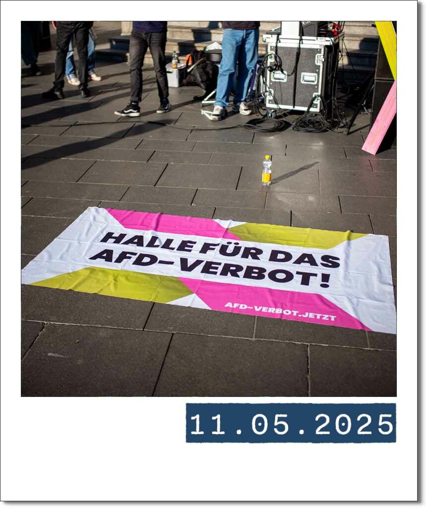 Forderungen nach einem AfD-Verbot werden laut. Auch in Halle versammelten sich 700 Menschen, um ein Zeichen gegen Rechtsextremismus zu setzen. Die dazugehörige Einstufung des Verfassungsschutzes wurde nach Klagen der AfD am 8.5.2025 vorerst ausgesetzt. Hieran hat sich bis zum Redaktionsschluss nichts geändert.